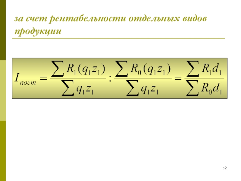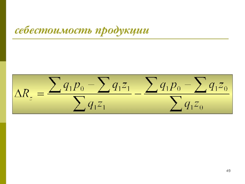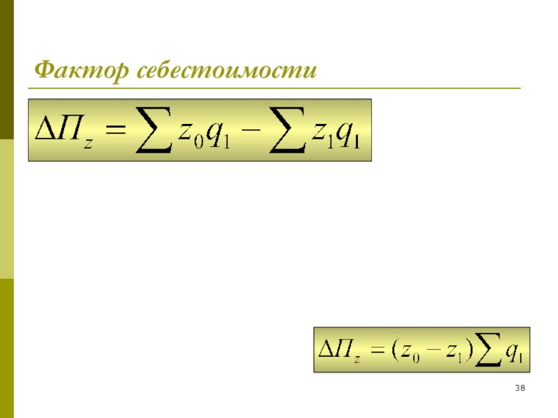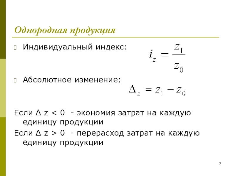 Однородная продукцияИндивидуальный индекс:Абсолютное изменение: Если  z  0 - экономия затрат на каждую единицу продукцииЕсли 