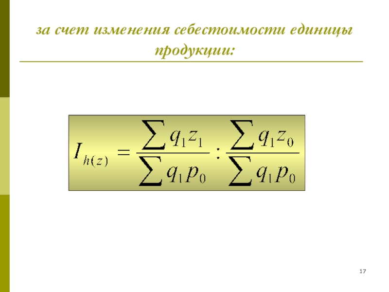 Слайд 17за счет изменения себестоимости единицы продукции: