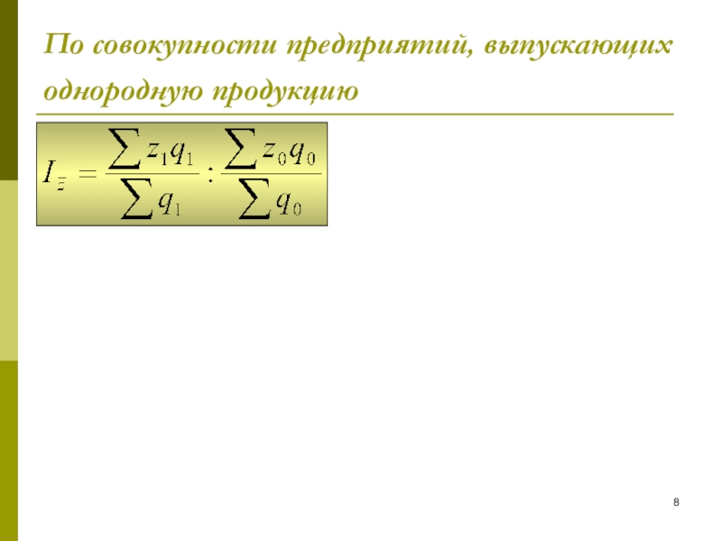 Слайд 8По совокупности предприятий, выпускающих однородную продукцию
