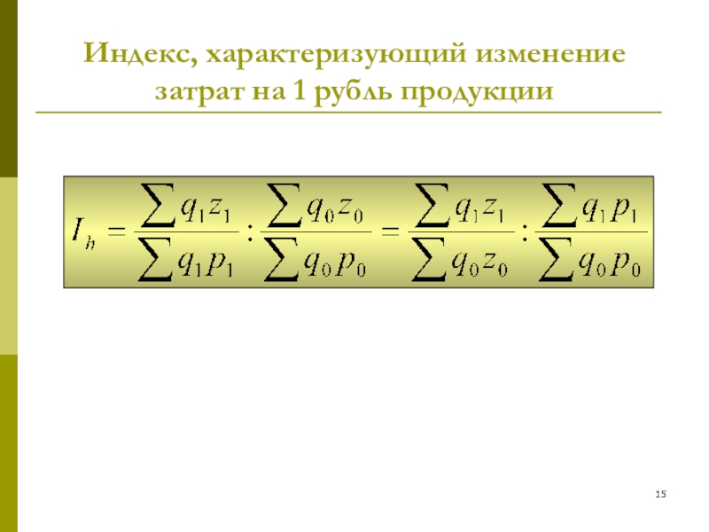 Слайд 15Индекс, характеризующий изменение затрат на 1 рубль продукции