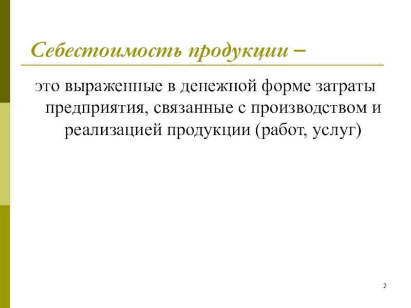 Себестоимость продукции – это выраженные в денежной форме затраты предприятия, связанные с производством и реализацией продукции (работ, услуг)