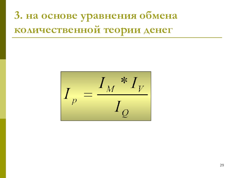 Слайд 293. на основе уравнения обмена количественной теории денег