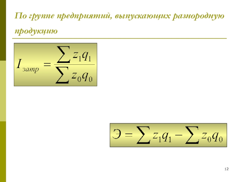 Слайд 12По группе предприятий, выпускающих разнородную продукцию
