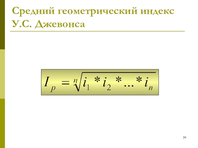 Слайд 24Средний геометрический индекс У.С. Джевонса