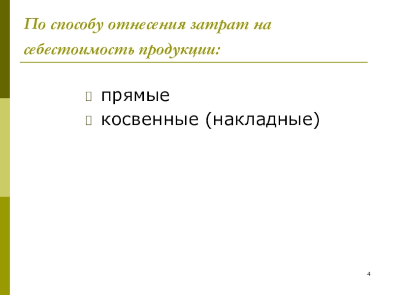 Слайд 4По способу отнесения затрат на себестоимость продукции: