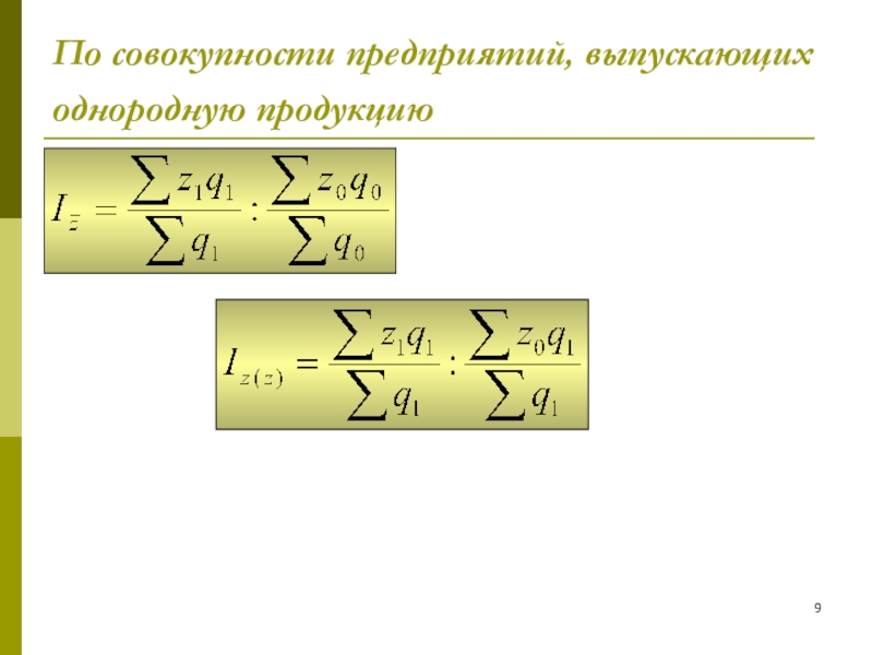 Слайд 9По совокупности предприятий, выпускающих однородную продукцию
