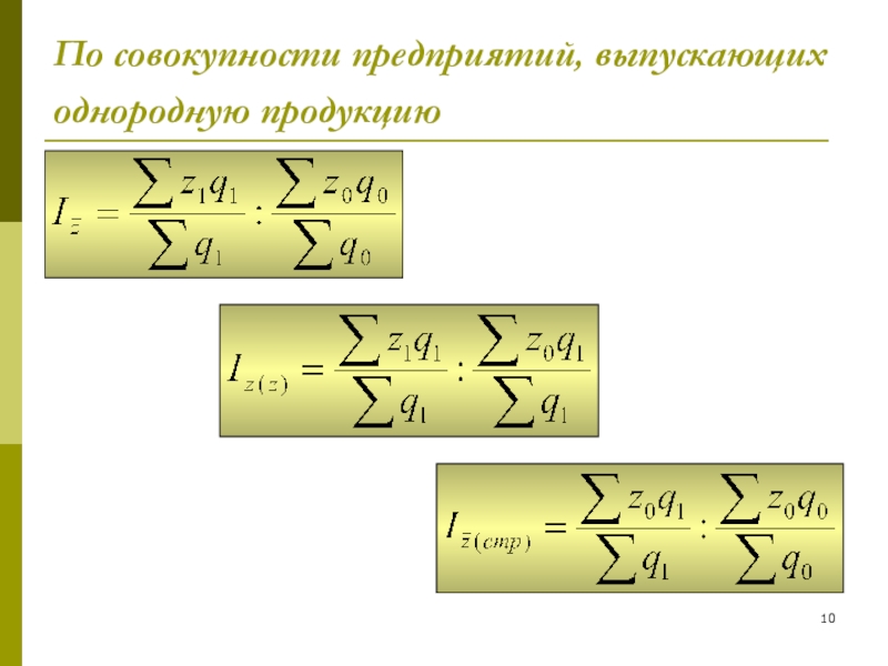Слайд 10По совокупности предприятий, выпускающих однородную продукцию