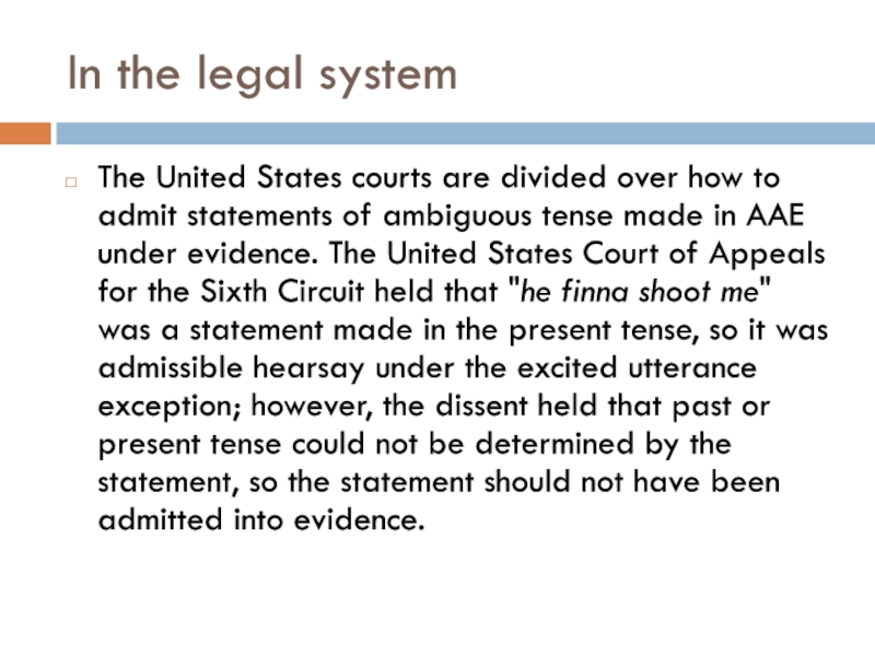 In the legal systemThe United States courts are divided over how to admit statements of ambiguous tense