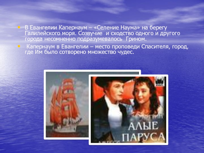 впоследствии находили созвучие с евангельским Капернаумом. История любви Ассоль и