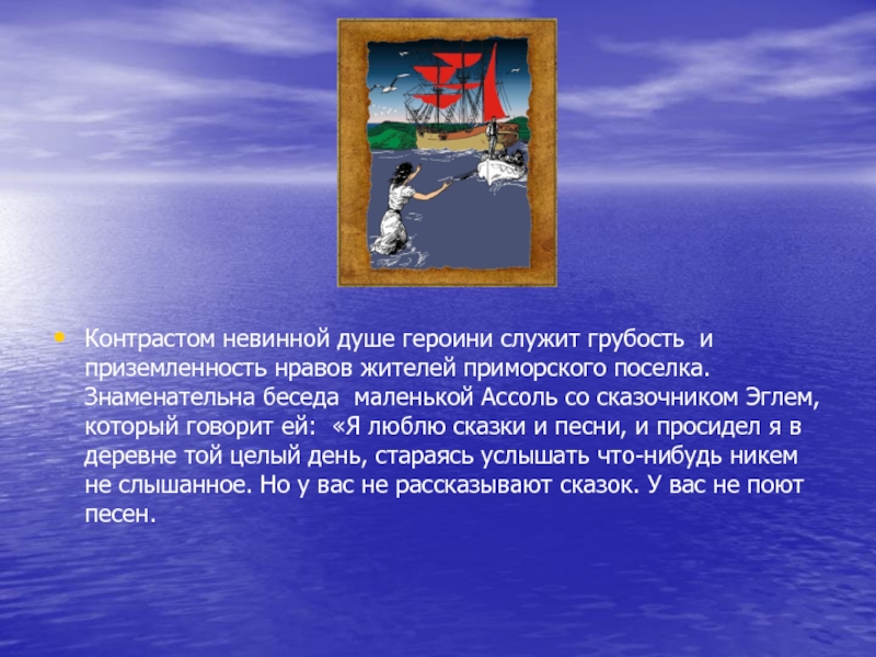 приморского поселка. Знаменательна беседа маленькой Ассоль со сказочником Эглем, который