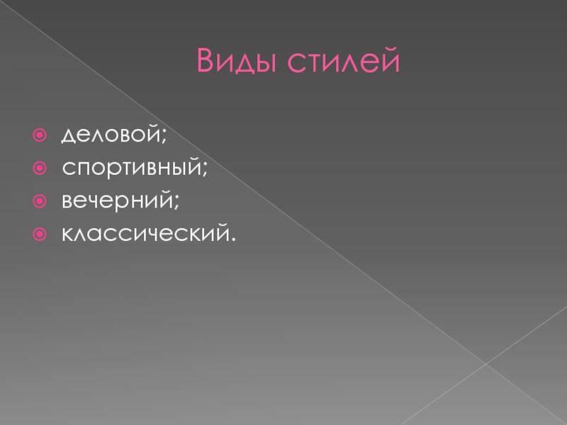 Содержание1) Что такое мода?2) Роль моды в нашей жизни.3) Виды стилей4) Как мода может повлиять на нас