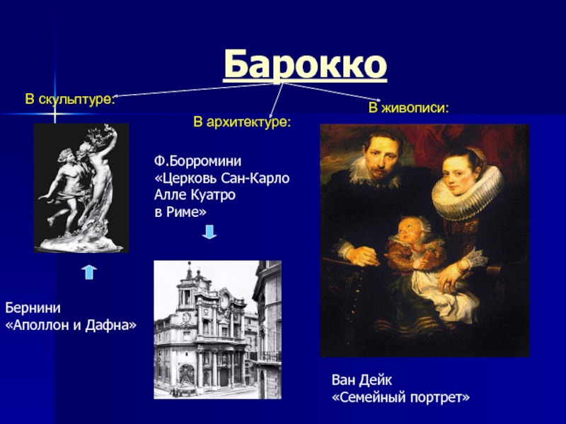 Барокко (итал. barocco, буквально – причудливый, странный), один из главенствующих стилей в архитектуре и искусстве Европы и Латинской Америки конца 16 – середины 18 вв. Искусству барокко свойственны грандиозность, пышность и динамика, патетическая приподнятость, интенсивность чувств, пристрастие к эффектной зрелищности, совмещению иллюзорного и реального, сильным контрастам масштабов и ритмов, материалов и фактур, света и тени.