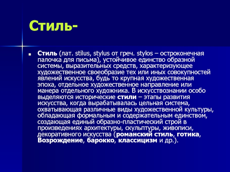 Стиль (лат. stilus, stylus от греч. stylos – остроконечная палочка
