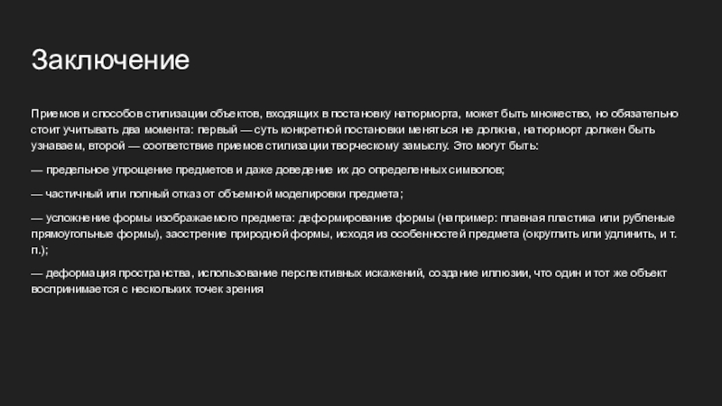 суть конкретной постановки меняться не должна, натюрморт должен быть узнаваем, второй — соответствие приемов стилизации творческому замыслу. Это могут быть: