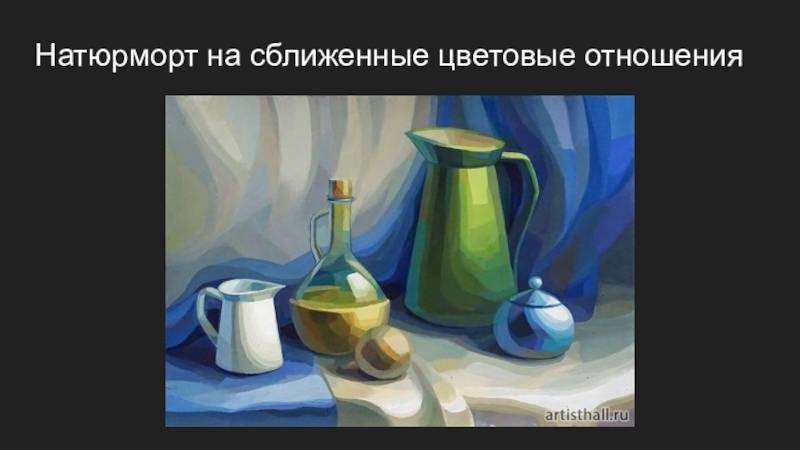Слайд 10Натюрморт на сближенные цветовые отношения