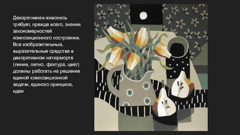 Слайд 6Декоративная живопись требует, прежде всего, знания закономерностей композиционного построения. Все