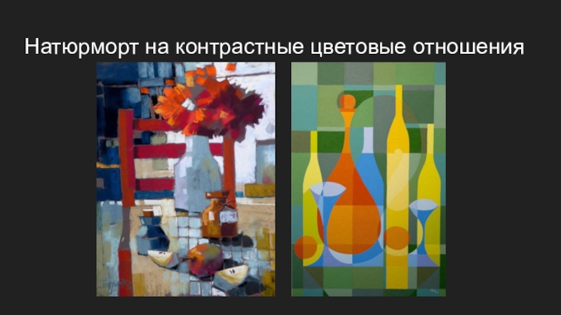 Слайд 11Натюрморт на контрастные цветовые отношения