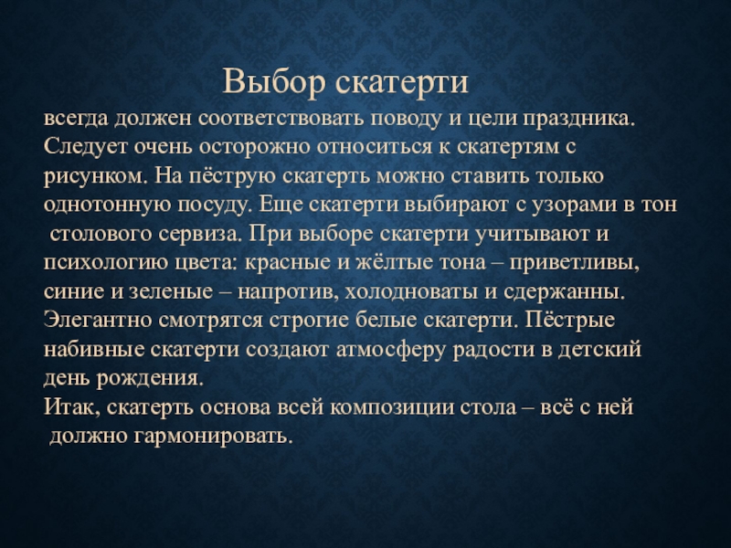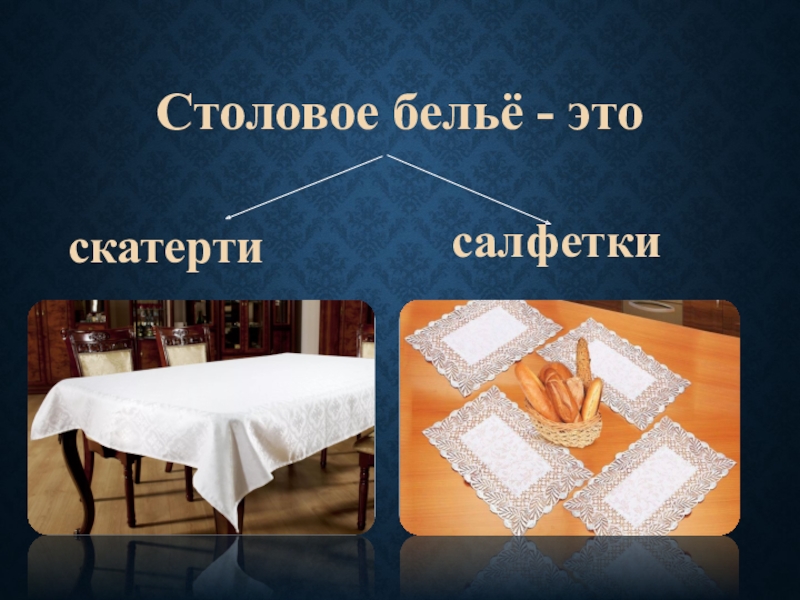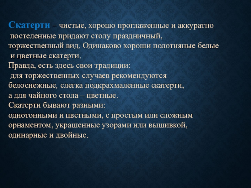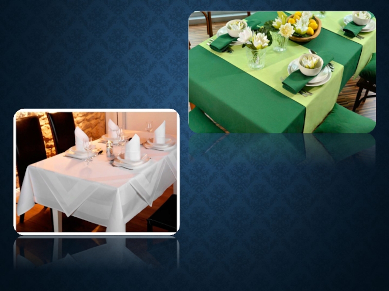 Слайд 5Скатерти – чистые, хорошо проглаженные и аккуратно