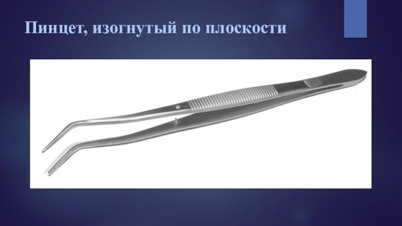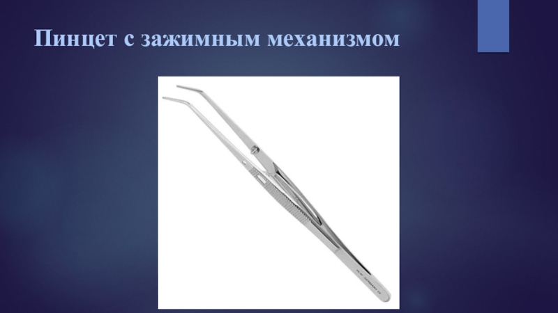 артикуляционная бумага и др.), а также для определения подвижности зубов. В зависимости от проводимых манипуляций используют прямые и изогнутые в плоскости пинцеты. Для надежного захвата и удержания предметов рабочая часть пинцета может быть снабжена алмазным напылением и насечками, ряд пинцетов имеют зажимной механизм