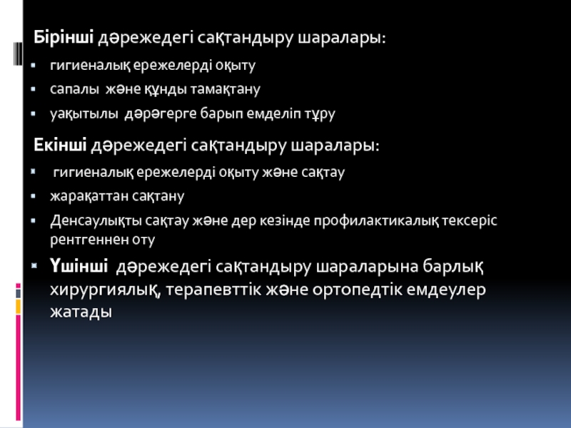 Слайд 7 Бірінші дәрежедегі сақтандыру шаралары:
