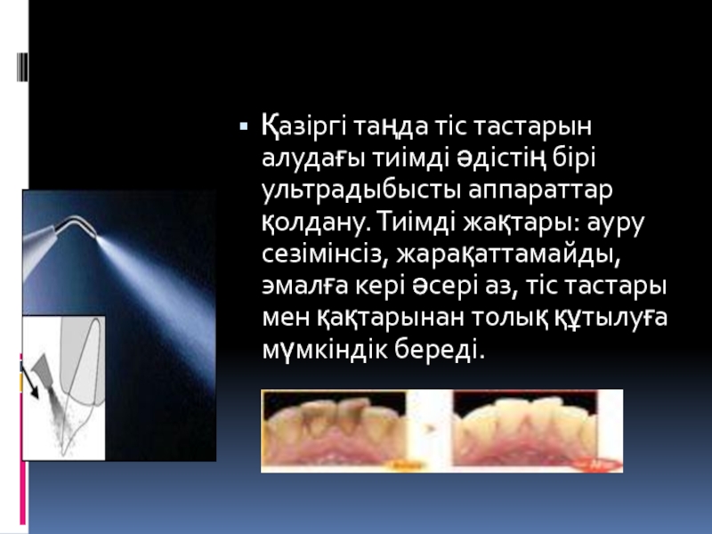 Слайд 18Қазіргі таңда тіс тастарын алудағы тиімді әдістің бірі ультрадыбысты аппараттар