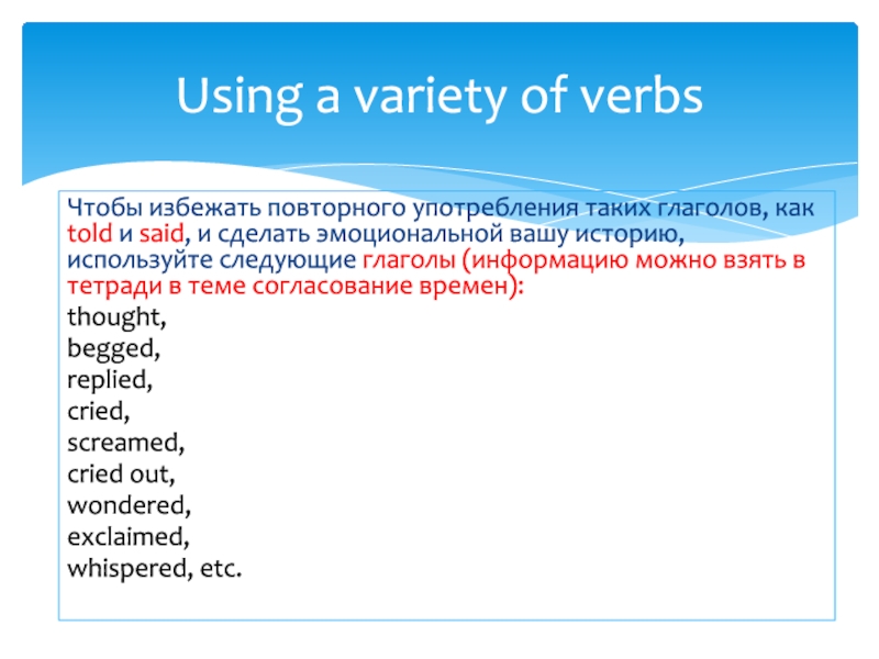 Using a variety of verbs