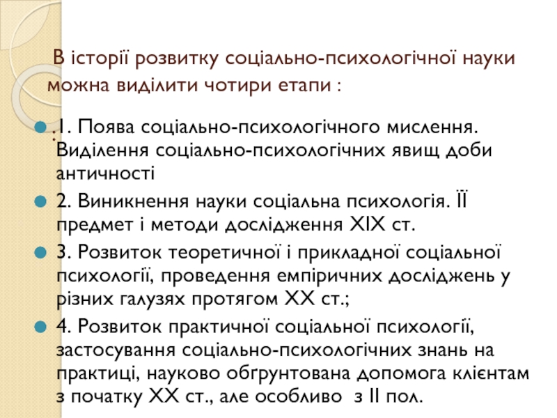 В історії розвитку соціально-психологічної науки можна виділити чотири етапи