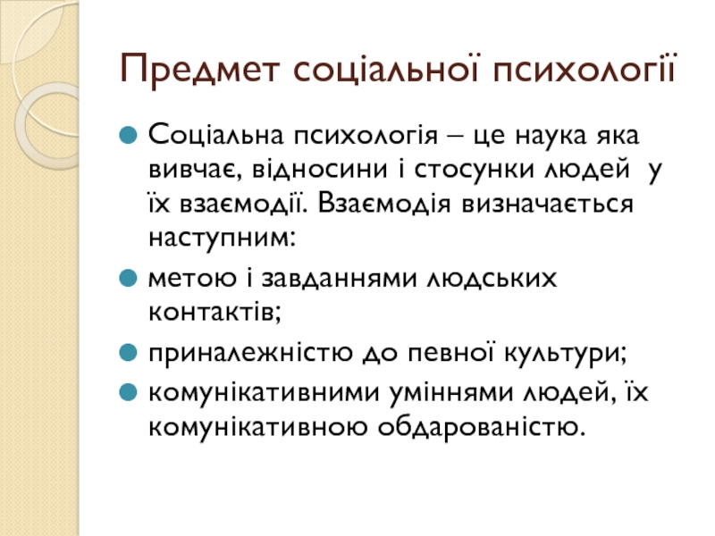 5. Предмет дослідження – взаємини людей; базові категорії: спілкування, характер взаємин.