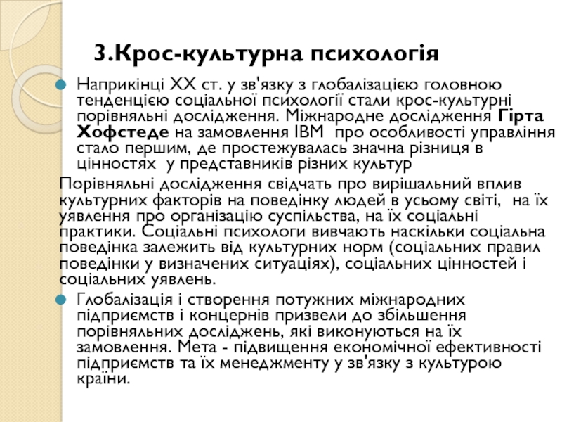 соціальної психології стали крос-культурні порівняльні дослідження. Міжнародне дослідження Гірта