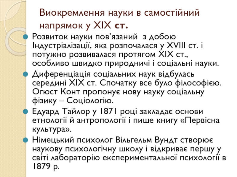 Слайд 5Виокремлення науки в самостійний напрямок у ХІХ ст.