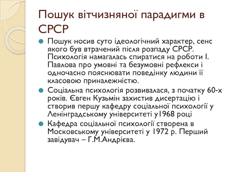 Слайд 23Пошук вітчизняної парадигми в СРСР