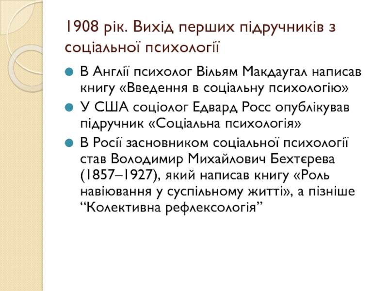 Слайд 101908 рік. Вихід перших підручників з соціальної психології