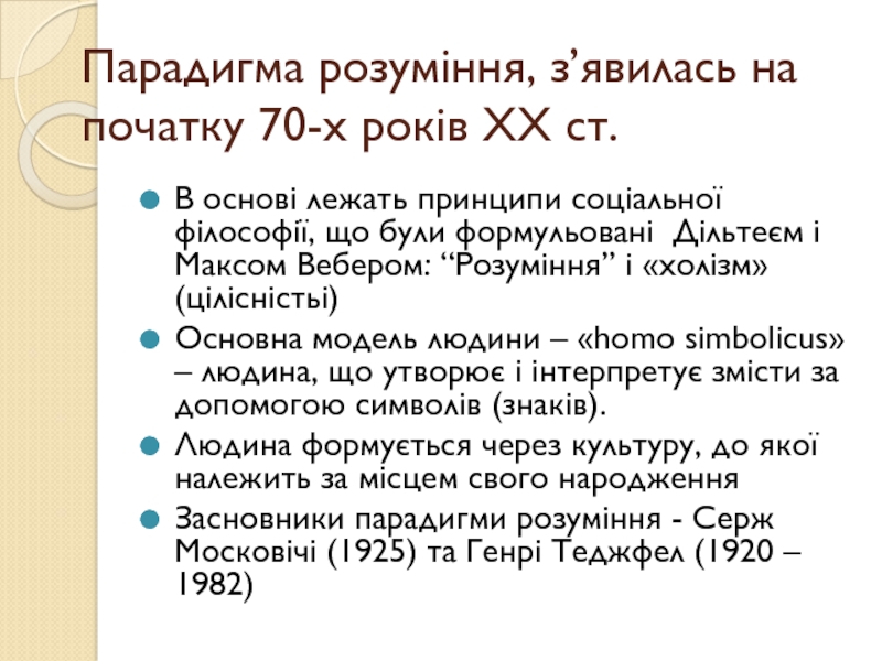 Слайд 19Парадигма розуміння, з’явилась на початку 70-х років ХХ ст.