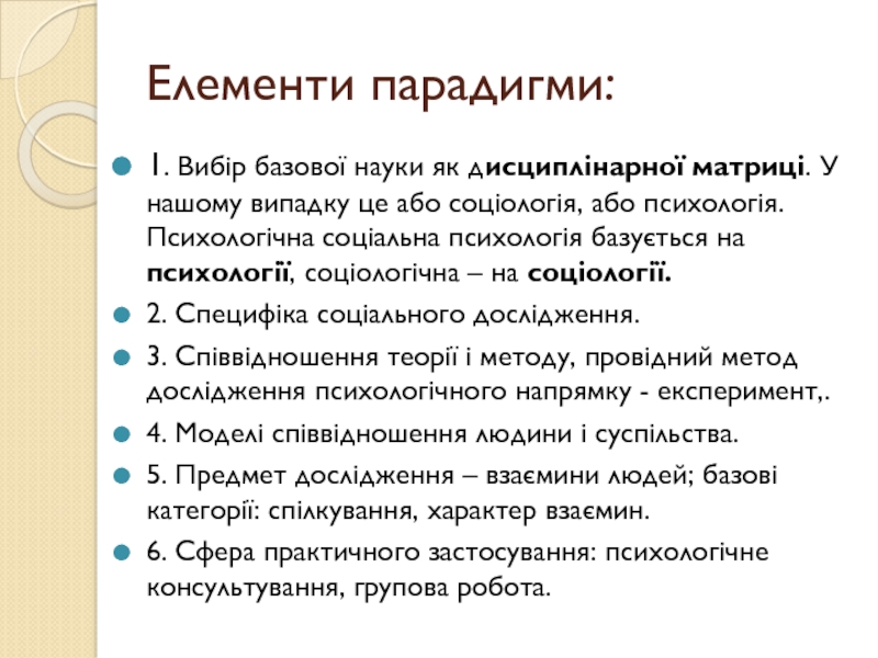 1. Вибір базової науки як дисциплінарної матриці. У нашому