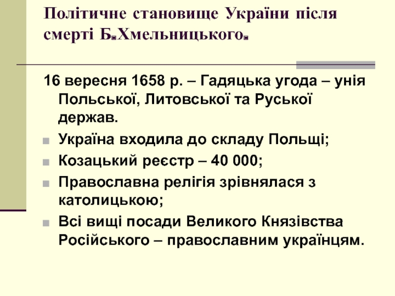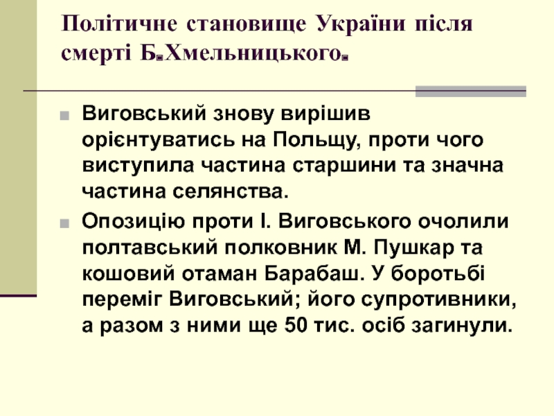 Слайд 8Політичне становище України після смерті Б.Хмельницького.