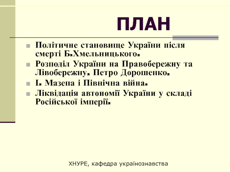 Слайд 4Політичне становище України після смерті Б.Хмельницького.