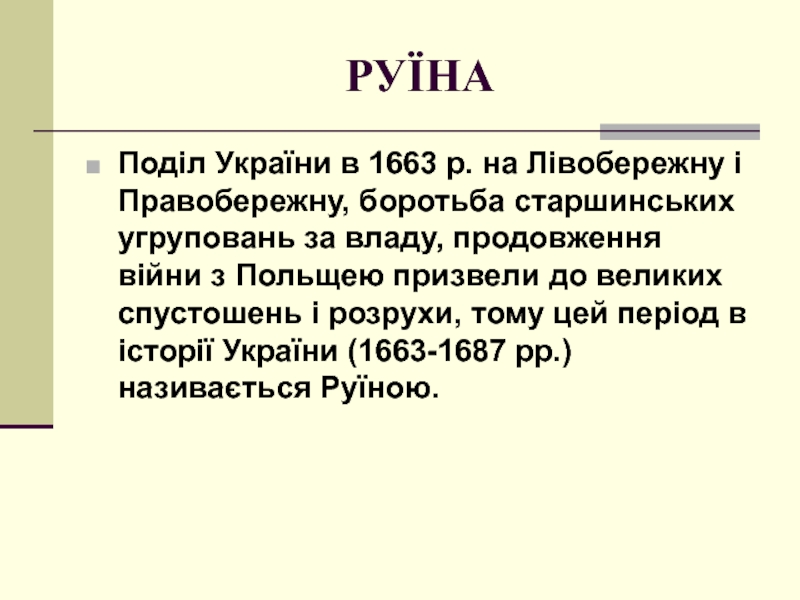 великих спустошень і розрухи, тому цей період в історії України (1663-1687 pp.) називається Руїною.