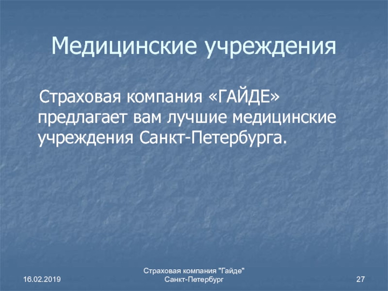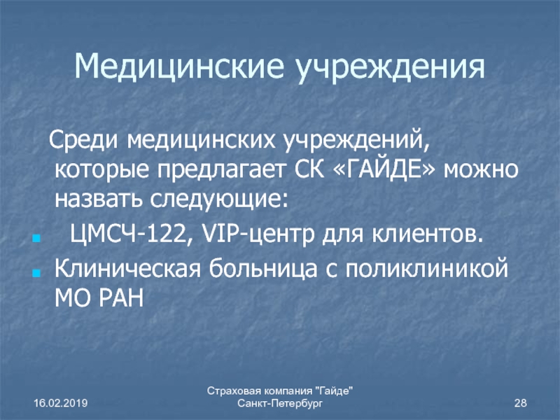 СК «ГАЙДЕ» имеет своих врачей, поликлинический комплекс. Также к вашим услугам круглосуточный диспетчерский центр.