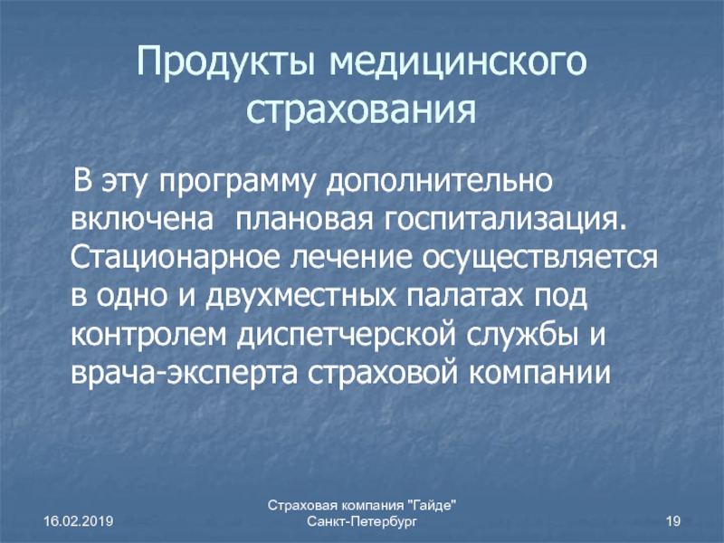 программу дополнительно включена плановая госпитализация. Стационарное лечение осуществляется в одно и двухместных палатах под контролем диспетчерской службы и врача-эксперта страховой компании