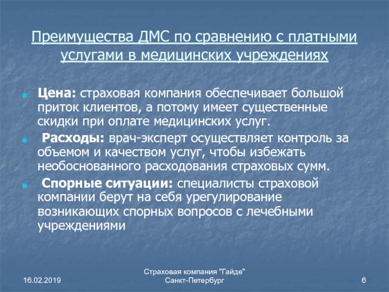 Цена: страховая компания обеспечивает большой приток клиентов, а потому имеет существенные скидки при оплате медицинских услуг.