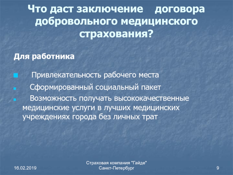 Возможность получать высококачественные медицинские услуги в лучших медицинских учреждениях города без личных трат