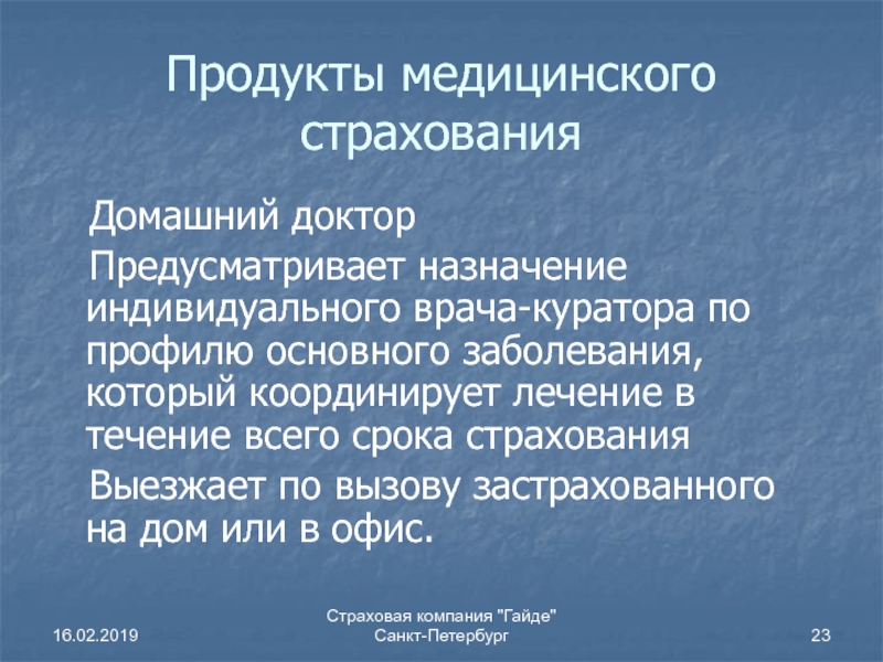 Предусматривает назначение индивидуального врача-куратора по профилю основного заболевания, который координирует лечение в течение всего срока страхования