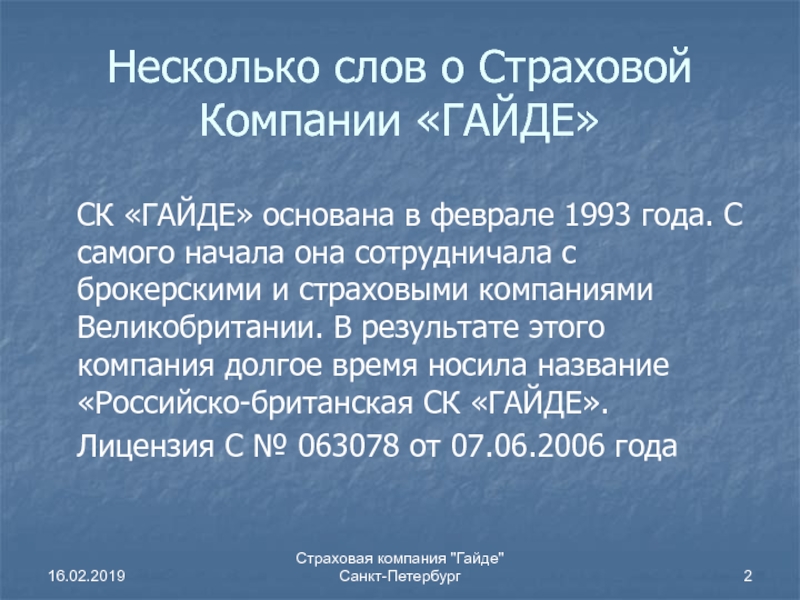 Несколько слов о Страховой Компании «ГАЙДЕ»