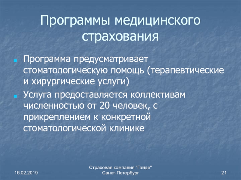 Услуга предоставляется коллективам численностью от 20 человек, с прикреплением к конкретной стоматологической клинике