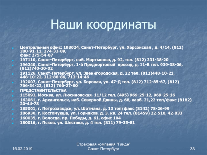 Центральный офис: 193024, Санкт-Петербург, ул.