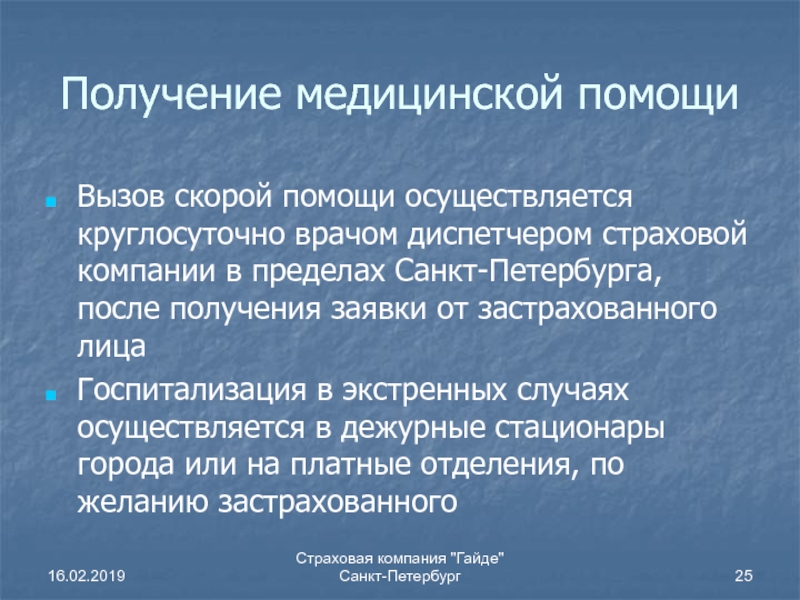 круглосуточно врачом диспетчером страховой компании в пределах Санкт-Петербурга, после получения заявки от застрахованного лица