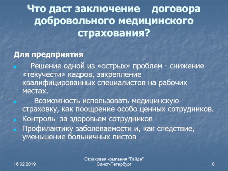 Возможность использовать медицинскую страховку, как поощрение особо ценных сотрудников.