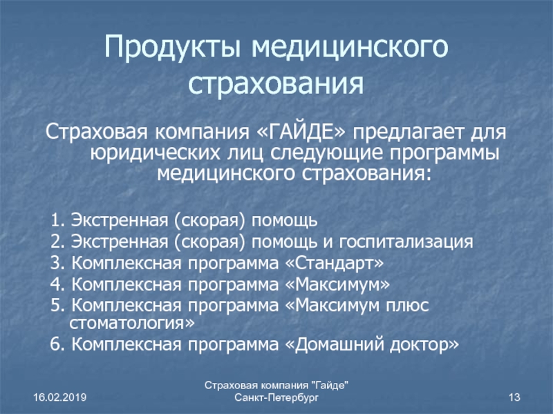 предлагает СК «ГАЙДЕ» можно назвать следующие: