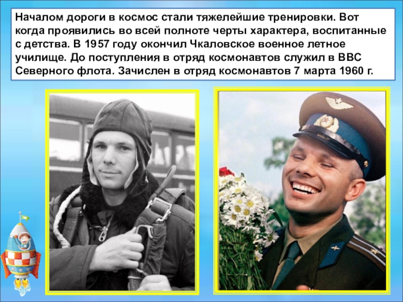 Слайд 16Началом дороги в космос стали тяжелейшие тренировки. Вот когда проявились
