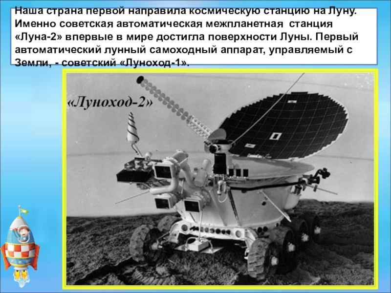 Слайд 21Наша страна первой направила космическую станцию на Луну. Именно советская